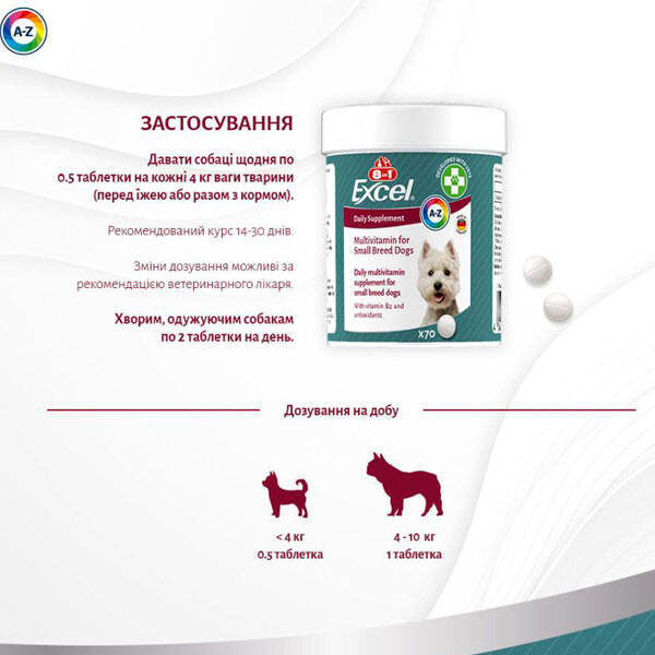 Мультивітамінний комплекс Excel Multi Vitamin — ідеальний вибір для собак дрібних порід, які потребують додаткової підтримки для активного та здорового життя.