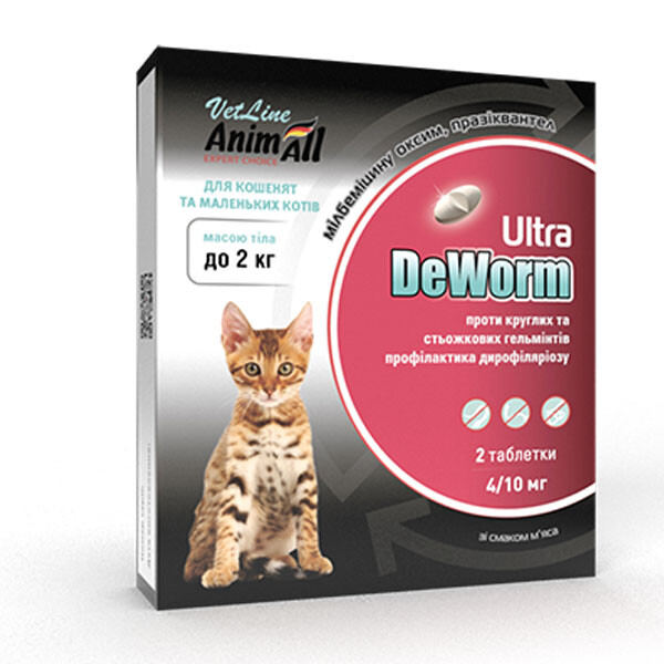 AnimAll DeWorm Ultra антигельмітні таблетки для котів масою до 2 кг (2 шт.)