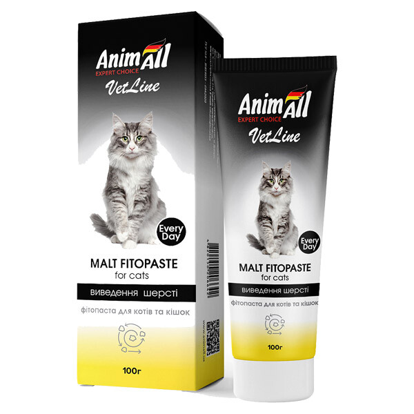 AnimAll VetLine фітопаста для виведення шерсті у котів 100 г