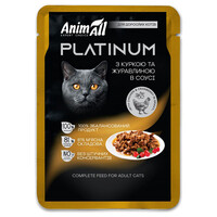 Вологий корм AnimAll PLATINUM пауч для дорослих котів з куркою та журавлиною в соусі — повноцінний збалансований раціон для щоденного годування. Соковиті шматочки м’яса у ніжному соусі мають привабливий смак і забезпечують кота необхідними поживними речовинами для активності та гарного самопочуття.