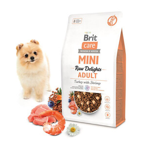 Brit Care Mini Raw Delights сухий беззерновий гіпоалергенний корм для собак малих порід з індичкою та креветкою (поєднання корму з ласощами)