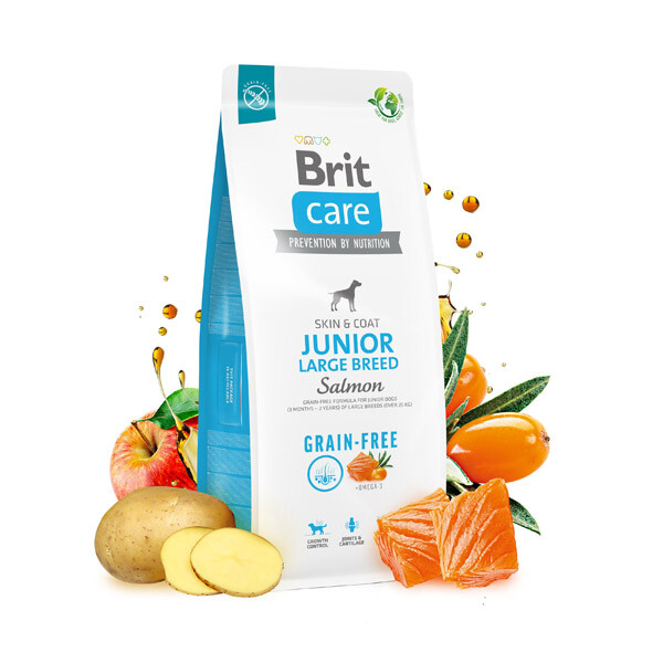 Беззерновий корм Brit Care GF Junior Large Breed суперпреміум класу розроблений для оптимального зростання, здорового розвитку та підтримки імунітету цуценят і молодих собак великих порід (понад 25 кг) віком від 3 місяців до 2 років. Цей раціон містить необхідні хондропротектори для підтримки суглобів і хрящів, багатий на високопоживні білки та жирні кислоти, що сприяють здоров’ю шкіри і шерсті, розвитку розумових здібностей та підтримці гарного фізичного стану.