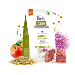 Сухий гіпоалергенний корм Brit Care Dog Hypoallergenic для дорослих собак малих порід з єдиним джерелом тваринного білка, мінімізує ймовірність алергічних реакцій, підходить для собак з чутливим травленням і спеціальними потребами в харчуванні, забезпечуючи збалансовану мікрофлору кишечника.