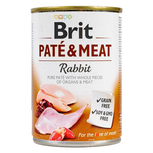 Brit Care Pate & Meat - вологий беззерновий корм з кроликом для дорослих собак. Це смачний і корисний вологий корм з ніжною текстурою паштету та вмістом 70% м’яса. Ідеально підходить для щоденного раціону дорослих собак.