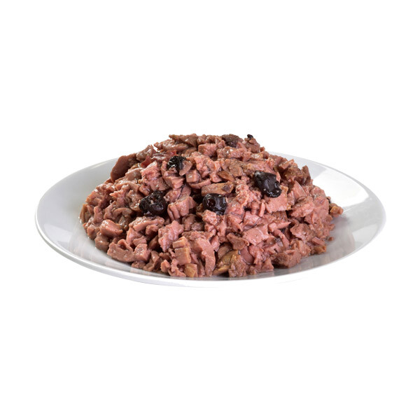 - М'ясо та продукти тваринного походження (85%) у філе (8% ягнятини).
