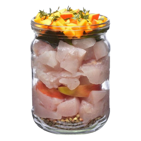 44% риба, 23% курка, 14% гречка, 6% гарбуз, 3% сорго, 2,3% гречка, 2% яблука, 2% мінерали, 1% суміш трав (розмарин, чебрець, календула, кульбаба), 1% лососева олія, 1% петрушка, 0,5% насіння льону, 0,2% водорості та мангольд.