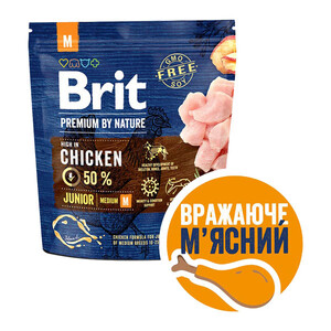 Сухий корм Brit Premium Junior M для цуценят і молодих собак середніх порід (курка) 1 кг