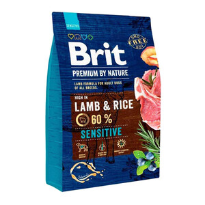 Brit Premium by Nature Sensitive Lamb - повнораціонний сухий корм для дорослих собак (старше 1 року) різних порід, які мають проблеми із травленням, схильність до алергічних реакцій, проблеми зі шкірою та шерстю. Раціон розроблений з урахуванням потреб організму тварини у поживних речовинах та вітамінах. Оновлена лінійка кормів Brit Premium by Nature містить збільшений вміст протеїнів тваринного походження, включаючи 35% м'яса ягняти, яке легко засвоюється організмом і належить до дієтичних та гіпоалергенних продуктів. Корм не містить ГМО, штучних підсилювачів смаку і має відмінні смакові якості.