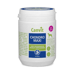 Кормова добавка для підтримки опорно-рухового апарату собак великих порід з ризиком або симптомами порушень рухової функції. Canvit Chondro Maxi рекомендовано для собак з дисплазіями, остеоартритом, після травм, собак похилого віку та з надлишковою вагою. Сприяє регенерації суглобів, зміцненню зв’язок і сухожилок, підвищує механічну міцність суглобів і покращує рухливість.