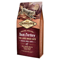 Carnilove Duck & Turkey для кіотів великих порід створений з урахуванням природного раціону котів у дикій природі. Цей корм містить високий відсоток легкозасвоюваних білків та ненасичених жирів, які живлять м'язи та відновлюють рівень енергії. Велике навантаження на кістково-м'язову систему компенсується хондропротекторами та природними речовинами, що забезпечують гнучкість суглобів та зміцнюють сухожилля і зв'язки. Качка та індичка є прекрасними джерелами енергії та вітамінів, забезпечуючи вашого улюбленця необхідними поживними речовинами для підтримання активності та здоров'я.