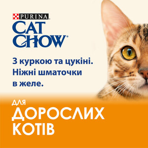 Вологий корм для дорослих котів Cat Chow Adult, ніжні шматочки в желе (курка та цукіні)