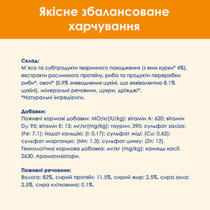 - Без штучних ароматизаторів та консервантів: натуральний та здоровий вибір для вашого улюбленця.