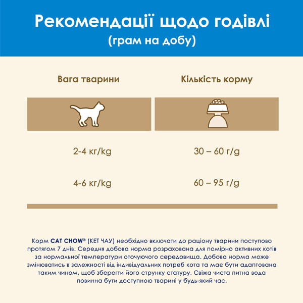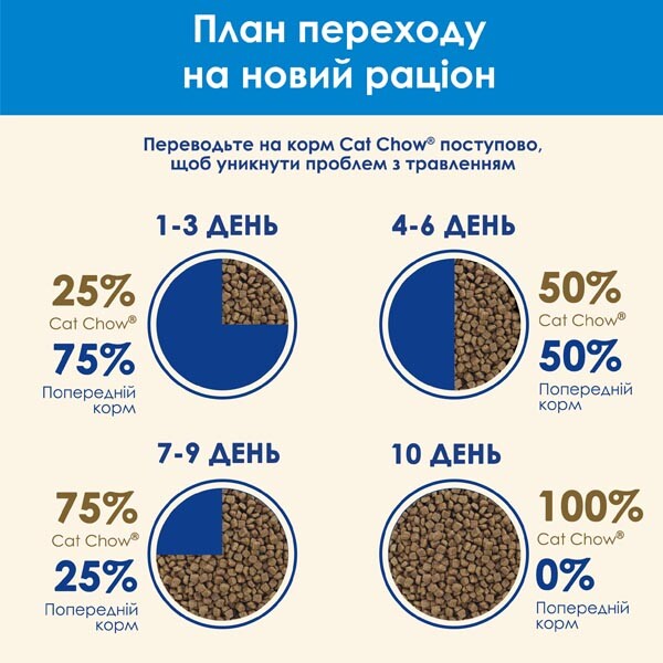 Корм Cat Chow з індичкою - це повнораціонне харчування для дорослих котів з формулою потрійної дії.