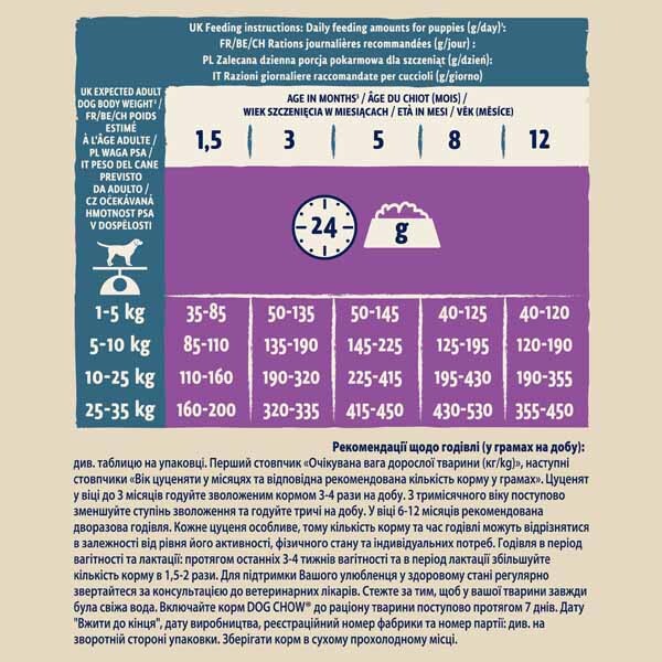 Можна змінювати кількість корму залежно від віку, активності цуценяти, його фізичного стану та погодних умов. Чиста свіжа вода завжди має бути в доступі для вашого улюбленця.