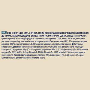 Корм Dog Chow Active з ягням — відмінний вибір для щоденного харчування вашого цуценяти віком до 1 року. Також підходить для вагітних та лактуючих собак. Цей сухий раціон містить тільки натуральні джерела протеїнів і має оптимальну енергетичну цінність. Завдяки балансу м'ясних та рослинних інгредієнтів, а також вітамінів, поживних речовин та добавок, корм підтримує здоров'я та активний ріст.