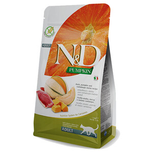Farmina ND Pumpkin Cat Adult – повнораціонний беззерновий корм для дорослих котів з качкою, гарбузом та динею.