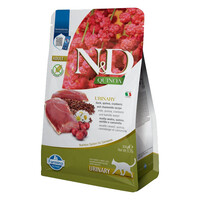 Farmina N&D Cat Quinoa Urinary Duck – повнораціонний дієтичний сухий корм для дорослих котів, рекомендований для профілактики утворення струвітних каменів і підтримки здоров’я сечовивідних шляхів.
