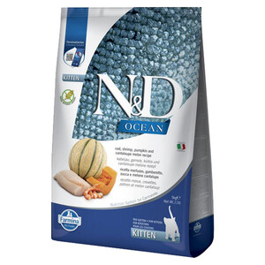 Farmina N&D Ocean Kitten Cod, Shrimp, Pumpkin & Melon сухий беззерновий корм з тріскою, креветками, гарбузом та динею для кошенят усіх порід віком до 12 місяців