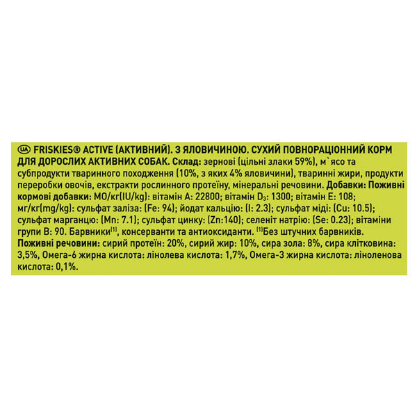 Сухий повнораціонний корм для дорослих активних собак Friskies Active (яловичина)