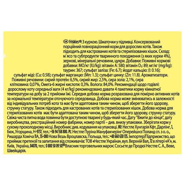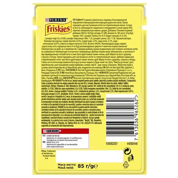 Виробник: Friskies, Nestle Purina Pet Care Company, країна реєстрації бренду – США, розміщення виробничих потужностей – Угорщина.