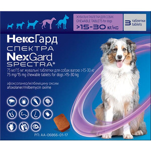 НексГард Спектра таблетки від глистів, бліх та кліщів для собак від 15 кг до 30 кг 3 табл.