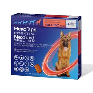 НексГард Спектра таблетки від глистів, бліх та кліщів для собак від 30 кг до 60 кг (захист до 1 місяця після прийому)