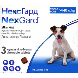 НексГард M таблетки від бліх та кліщів для собак від 4 до 10 кг 3 табл.