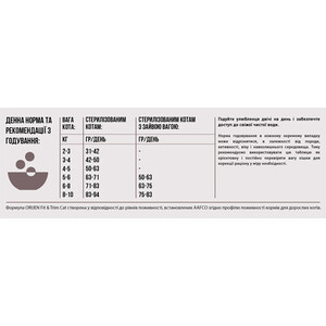Зазвичай таблиця рекомендованих норм харчування вказується на упаковці корму як орієнтир, проте важливо постійно слідкувати за вагою та фізичним станом вашого кота. Регулярні корекції раціону допоможуть уникнути набору зайвої ваги або недостатнього харчування. Також не забувайте, що свіжа питна вода має бути в доступі постійно, особливо при годуванні сухим кормом, для підтримки гідратації та здоров'я нирок кота.