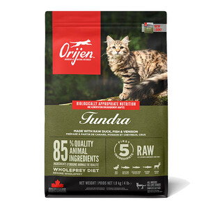Раціон ORIJEN Tundra Cat розроблений, щоб забезпечити вашого кота найвищим рівнем харчування, підтримуючи його здоров'я та енергійність. В основі формули – 85% м’ясних інгредієнтів, включаючи м’язове м'ясо, органи та їстівні кістки, що ідеально імітує природний раціон котів.