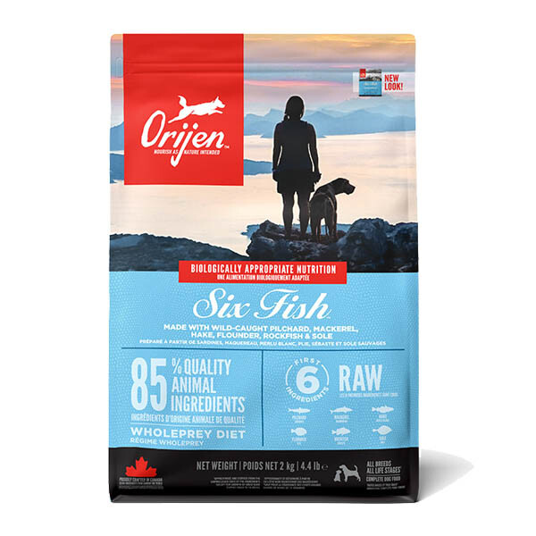 ORIJEN Six Fish — це високопоживний корм для собак усіх стадій життя, розроблений на основі природних рибних інгредієнтів. Завдяки багатому вмісту білків (38%) та низькому рівню вуглеводів (18%), корм відповідає еволюційним та біологічним потребам собак.