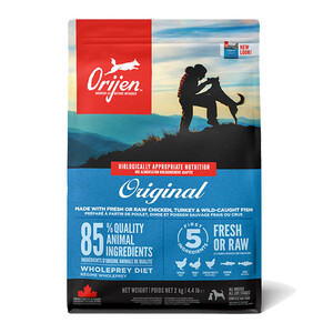 Корм ORIJEN Original – це високопротеїновий раціон, створений для собак усіх порід і вікових категорій, який максимально наближений до природного харчування. Він містить інгредієнти преміальної якості, включаючи свіжу птицю та рибу, які забезпечують поживними речовинами для підтримки здоров’я та активності собак.