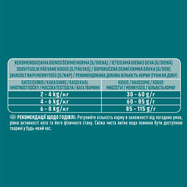 | Вага кішки | Добова норма корму в грамах |