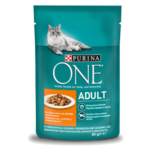 Purina One Adult із куркою та зеленою квасолею – це консервований корм у вигляді шматочків у соусі, створений спеціально для дорослих котів за участю дієтологів та ветеринарів. Завдяки своєму поживному складу та високій засвоюваності, він підходить для щоденного раціону.