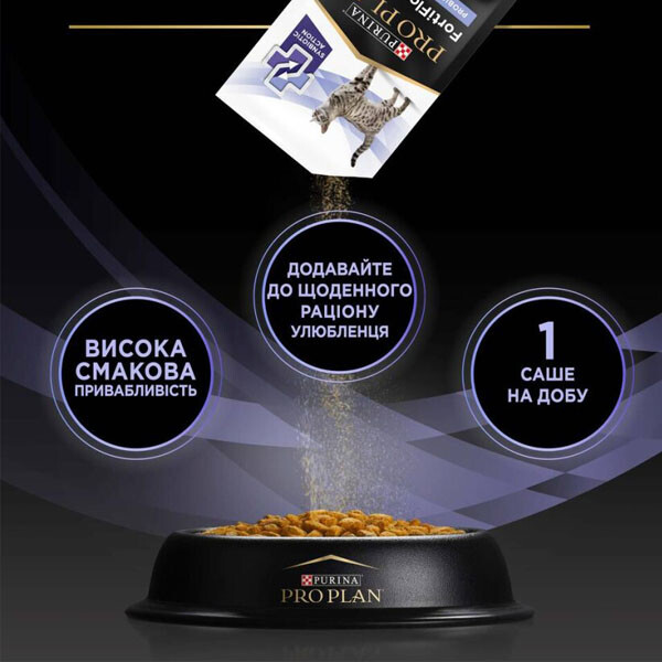PURINA PRO PLAN FortiFlora PLUS - додатковий корм для дорослих котів та кошенят (після відлучення від матері) із синбіотичною дією пребіотика та пробіотика. Cприяє підтриманню здорового мікробіому, його балансу та зміцненню імунного захисту. Кожне саше містить гарантований рівень пробіотичних бактерій в поєднанні з пребіотиком рослинного походження.