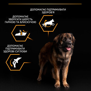 Великі породи собак (вагою понад 25 кг) мають підвищені потреби в поживних речовинах та енергії, проте важливо не допустити переїдання, оскільки їхній обмін речовин дещо повільніший. Purina Pro Plan врахував ці особливості й створив збалансоване харчування для підтримки здоров'я великих собак.