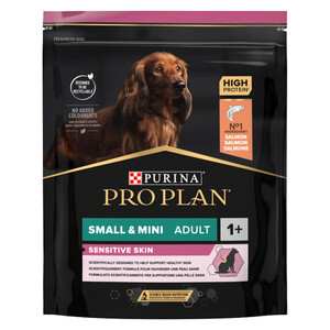 Purina Pro Plan Small & Mini Adult Sensitive Skin Salmon — це спеціально розроблений корм для дорослих собак малих порід, які мають чутливу шкіру та схильність до алергічних реакцій. Корм містить комплекс OptiDerma, що сприяє покращенню стану шкіри та шерсті, та збагачений важливими нутрієнтами для підтримки загального здоров'я вашого улюбленця.