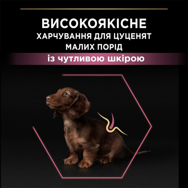 Сухий повнораціонний корм Pro Plan для цуценят малих порід з чутливою шкірою (лосось)