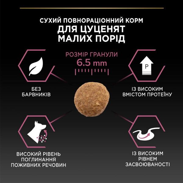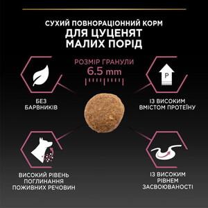 - Для мініатюрних порід: корм спеціально адаптований до потреб мініатюрних цуценят.