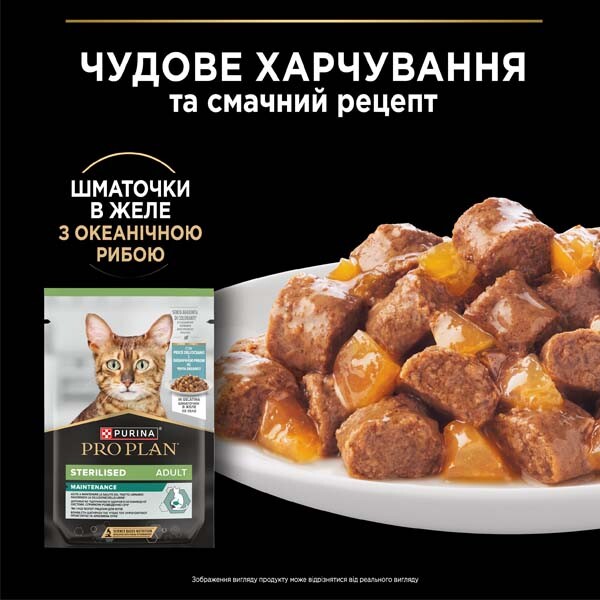 Консервований порційний повнораціонний корм Purina Pro Plan для дорослих стерилізованих котів з океанічною рибою, шматочки в желе.