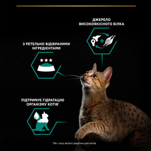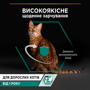 - Містить комбінацію важливих нутрієнтів, які допомагають підтримувати функціонування природних захисних систем кота.