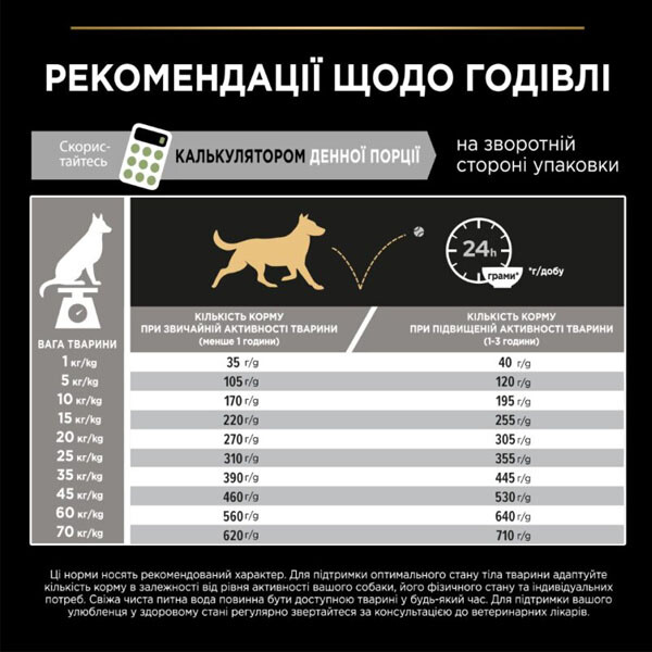 Можна змінювати кількість корму залежно від віку, активності тварини, її фізичного стану та погодних умов. Чиста свіжа вода завжди має бути в доступі для вашого улюбленця.
