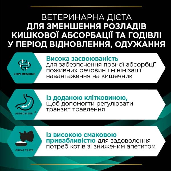 Лікувальний вологий корм Purina Pro Plan Veterinary Diets EN Gastrointestinal для котів з захворюваннями шлунково-кишкового тракту є спеціально розробленим продуктом для підтримки травної системи при гострих і хронічних патологіях. Він має низку лікувально-профілактичних властивостей, які допомагають полегшити симптоми хвороби та відновити травлення.