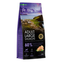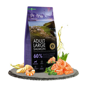 Profine Adult Large Breed Salmon з лососем — це сухий корм суперпреміум класу, створений для дорослих собак великих порід (вагою від 25 кг). Завдяки високому вмісту лосося (38%), корм забезпечує чудове травлення, смакові якості та необхідну енергію для підтримки активного способу життя. Хондропротектори в складі підтримують здоров'я суглобів і скелета.