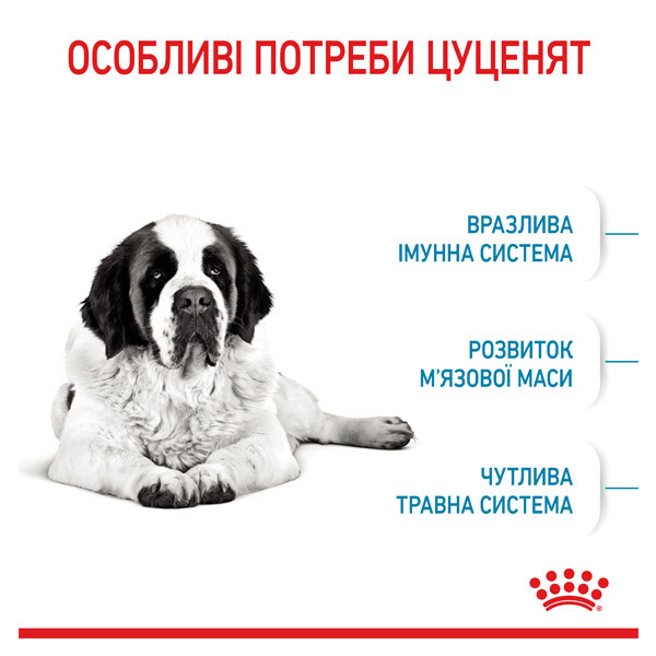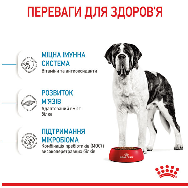Royal Canin Giant Junior - повнораціонний сухий корм для собак гігантських розмірів. Вага дорослої тварини понад 45 кг, віком від 8 до 18/24 місяців.