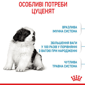 Ця формула забезпечує унікальні харчові потреби цуценят гігантських розмірів від 2 до 8 місяців, запобігаючи набору зайвої ваги.