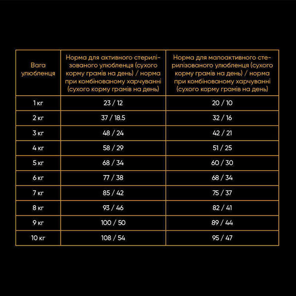 - Збалансоване щоденне харчування: раціон відповідає всім потребам дорослих кастрованих/стерилізованих котів.