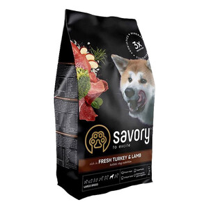 Сухий низькозерновий корм Savory Large Breeds Fresh Turkey & Lamb для дорослих собак великих порід вагою понад 25 кг (індичка та ягня)