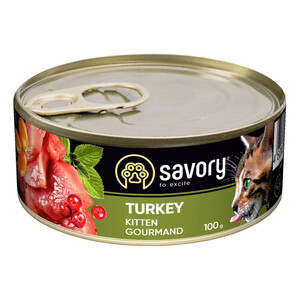 Savory Kitten Turkey - повнораціонний вологий корм з індичкою для кошенят. Ексклюзивна рецептура корму була розроблена досвідченими європейськими спеціалістами з харчування домашніх улюбленців. Використовуючи холістичний підхід, вдалося створити біологічно відповідний, здоровий раціон для котів, який є корисним і смачним настільки, що лапки оближеш. Поєднання добірних натуральних інгредієнтів дає можливість піклуватися про здоров’я чотирилапого, а вишуканий смак – дарувати йому насолоду від щоденного споживання корму Savory.
