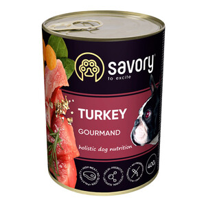Вологий корм Savory Adult Dog Turkey для дорослих собак - повнораціонний вологий корм з індичкою для собак усіх порід. Корм пробудить у вашого улюбленця ту життєву енергію, про яку він навіть сам ще не знав. Ексклюзивна рецептура корму була розроблена досвідченими європейськими спеціалістами з харчування домашніх улюбленців. Використовуючи холістичний підхід, вдалося створити біологічно відповідний, здоровий раціон для собак, який є корисним і смачним настільки, що лапки оближеш. Поєднання добірних натуральних інгредієнтів дає можливість піклуватися про здоров’я чотирилапого, а вишуканий смак – дарувати йому насолоду від щоденного споживання вологого корму Savory.