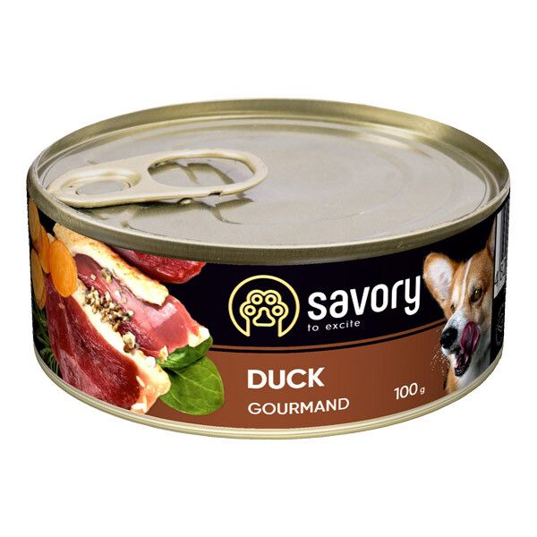 Вологий корм Savory Adult Dog Duck - повнораціонний вологий корм для собак усіх порід. Корм Savory пробудить у вашого улюбленця ту життєву енергію, про яку він навіть сам ще не знав. Ексклюзивна рецептура корму була розроблена досвідченими європейськими спеціалістами з харчування домашніх улюбленців. Використовуючи холістичний підхід, вдалося створити біологічно відповідний, здоровий раціон для собак, який є корисним і смачним настільки, що лапки оближеш. Поєднання добірних натуральних інгредієнтів дає можливість піклуватися про здоров’я чотирилапого, а вишуканий смак – дарувати йому насолоду від щоденного споживання корму.